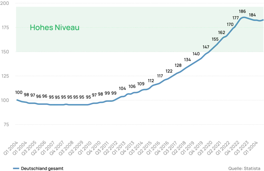 Auch wenn die Immobilienpreise zuletzt leicht nachgegeben haben, liegen sie im Vergleich zu den vergangenen zehn Jahren noch immer deutlich höher. Viele Eigentümer können daher trotz aktueller Preisrückgänge attraktive Gewinne realisieren.
